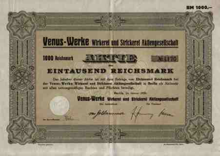Wirk(Jersey)stoffen. Der größte Teil der Erzeugnisse wird unter der Marke Venus vertrieben. Am 30.10.1930 Änderung