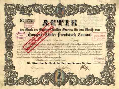| Bank des Berliner Kassen Vereins | 1000 Thaler | Art.Nr.0033 |