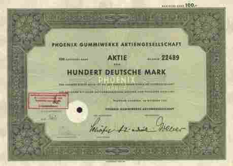 | Phoenix Gummiwerke A.G., mit Stempel der Hamburger Flutkatastrophe vom Februar 1962 | 100 DM | Art.Nr.0474 |