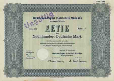 | Münchener Export Malzfabrik München A.G. | 900 DM | Art.Nr.0547 |