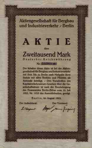 | A.G. für Bergbau und Industrieverkehr | 2000 Mark | Art.Nr.0955 |