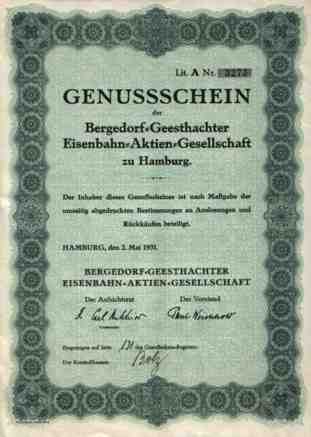 Gegründet am 31.8.1905. Bau und Ausnutzung einer normalspurigen Kleinbahn von Bergedorf nach Geesthacht nebst einer gleichartigen Zweigbahn von Bergedorf nach Kirchwärder-Zollenspieker