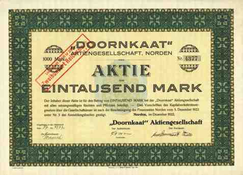 Doornkaat Koolman" (Brauerei) fusionierten 1899 zur Doornkaat AG. Im 1. Weltkrieg wurde die Brauerei stillgelegt, die Brennerei dagegen